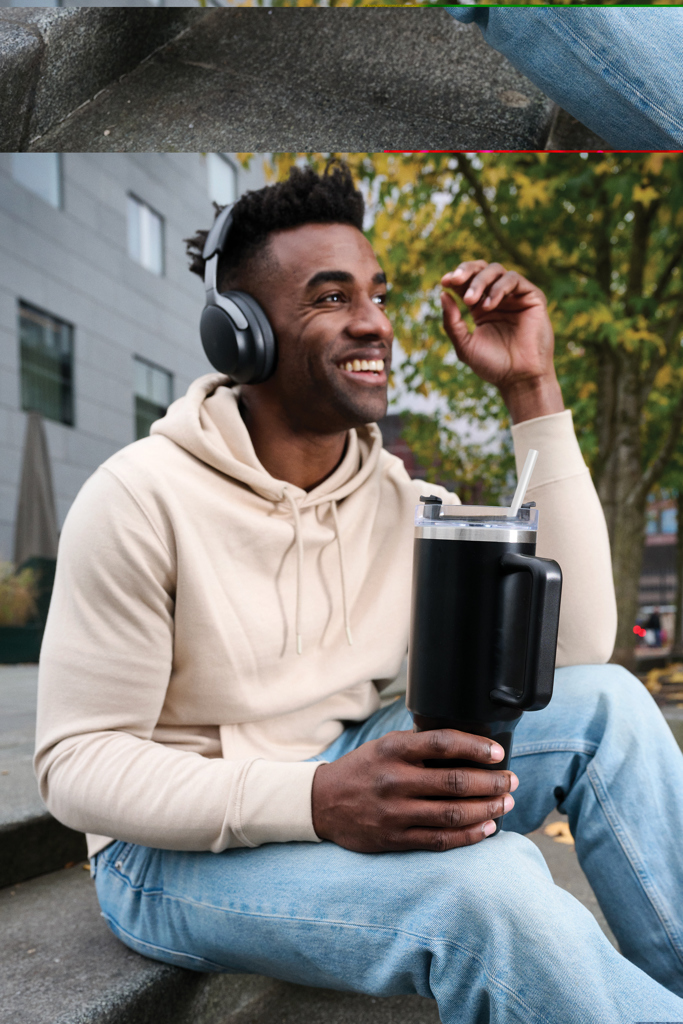Išorė pagaminta iš patvaraus RCS sertifikuoto perdirbto nerūdijančio plieno, o dvigubų sienelių vakuuminė izoliacija padeda išlaikyti gėrimus norimos temperatūros. Puodelis turi nepralaidų dangtelį su dviguba funkcija – galima gurkšnoti tiesiai arba naudoti komplekte esantį perdirbto plastiko šiaudelį.
