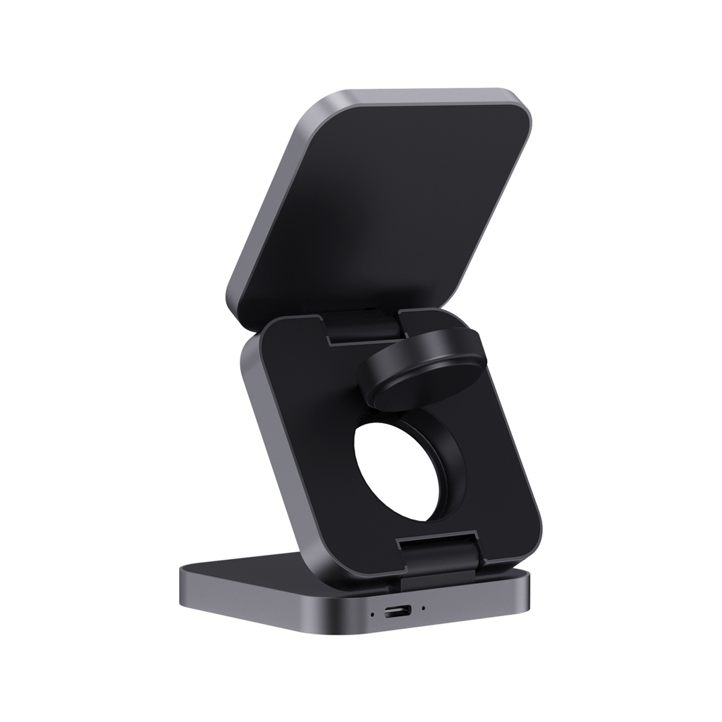 Prabangus sulankstomas 3 viename belaidis įkroviklis, pagamintas iš RCS perdirbto ABS plastiko ir RCS perdirbto aliuminio.